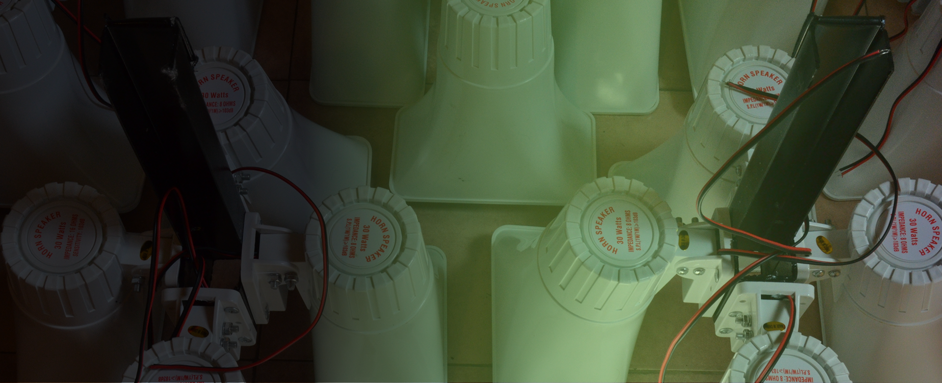 Instalación del circuito de parlantes en los depósitos y Bocinas difusoras en las playas de estacionamiento.